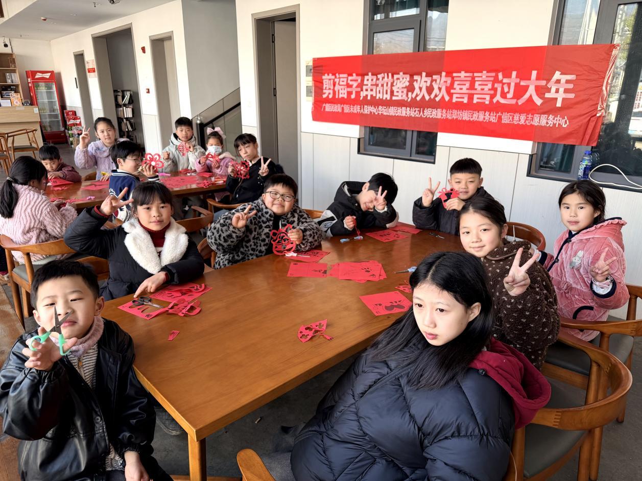 新春将至,年味渐浓。为弘扬中华优秀传统文化,营造欢乐祥和、温馨和谐的节日氛围,2月11日,江西省上饶市广信区华坛山镇民政服务站联合镇文化站,举办“剪福字 串甜蜜,欢欢喜喜过大年”迎新春主题活动,让孩子们在指尖技艺与舌尖甜蜜中感受传统年俗魅力。