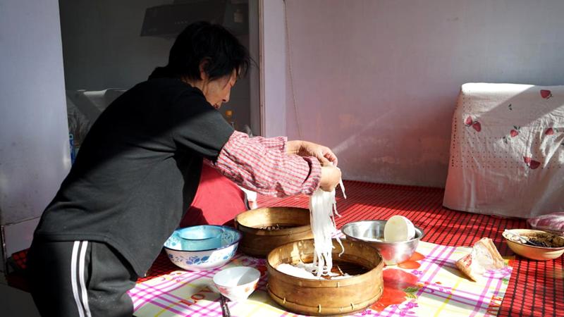 手工压粉条是丰镇腊月不可或缺的劳作场景。大家将淀粉调浆、蒸熟、漏条、晾晒,一根根晶莹筋道的粉条顺势而出。从拌浆到漏粉全程手工操作,口感紧实耐煮,是春节炖菜、火锅的必备食材。热气腾腾粉条垂落,一顺到底、年年有余的祝福藏在每一道工序里,成为乡村腊月最热闹的图景。