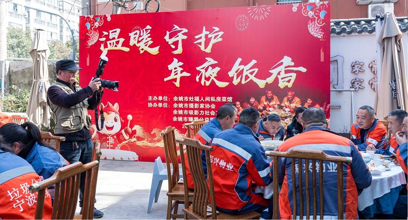 年夜饭香”公益活动在浙江省余姚市温情落幕。在市委社会工作部、市民政局的悉心指导下,灶福人间私房菜馆牵头主办,市摄影家协会、吸影力社会工作服务中心、臻爱公益服务中心协同发力,太平洋慈善基金会鼎力支持,为坚守一线的环卫工人送上热气腾腾的年夜饭,用一餐烟火、一张照片、一份坚守,让异乡劳动者在姚城感受到家的暖意,彰显着新时代城市文明的温度与力量。