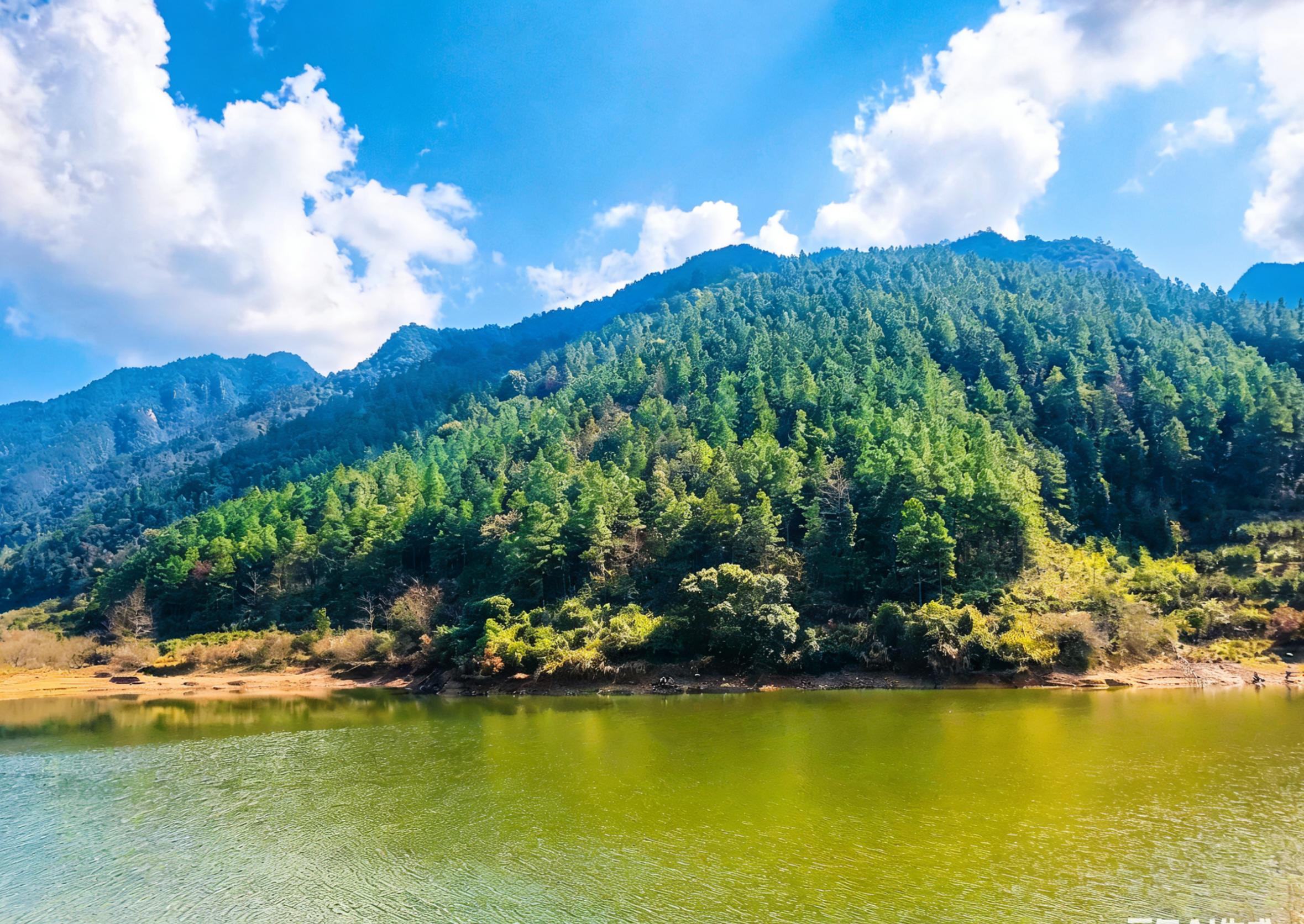 山脚下那一汪石屋水库,总是平静得像不曾被人惊扰过的镜。蓝天跌进水里,白云浮在水面,山影倒立,俨然是另一个世界。有风吹来,水纹细细而起,像是大地轻轻打了个寒噤,很快又回归平静。村人常来山间砍柴,孩童也来嬉水摸虾。山水见证了他们的悲喜,也默默包容所有的喧嚣与寂静。