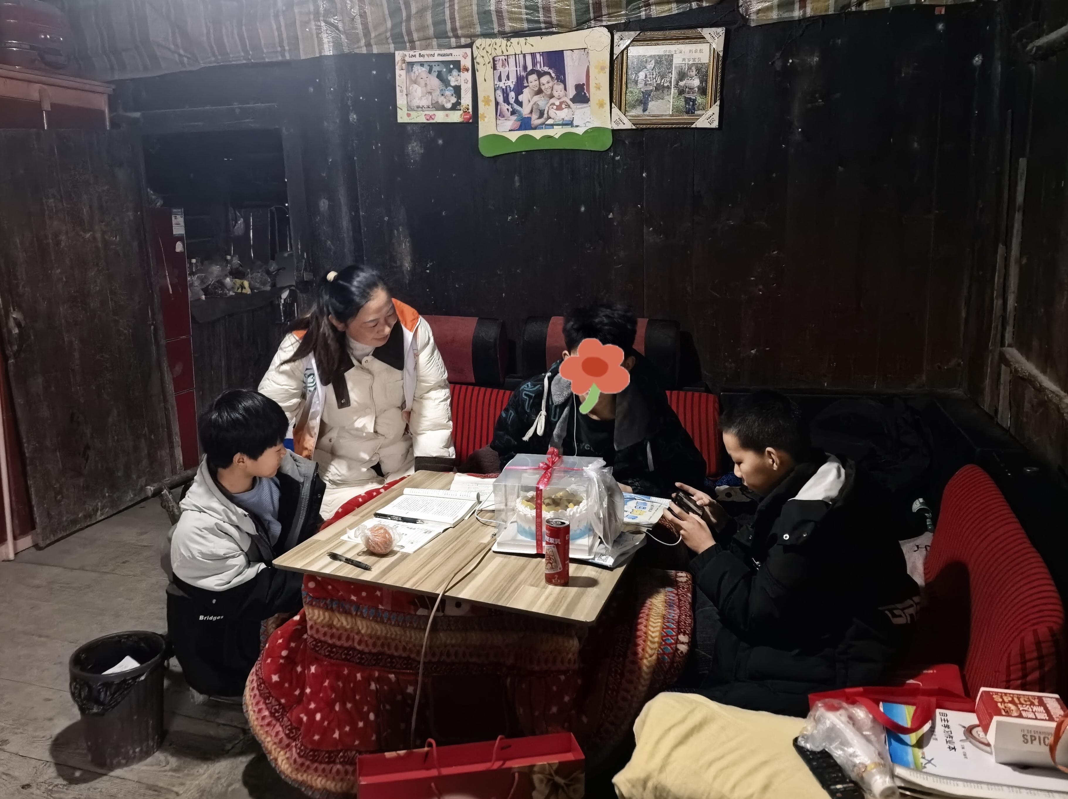 这份渴望,被桑植力行的社工们敏锐地捕捉到了。当天下午,河口乡社工向琴与志愿者邹俊,带着精心挑选的礼物——一个符合少年喜好的蛋糕、一套实用的学习用品,以及满载暖意的日常生活物资,叩响了小浩的家门。