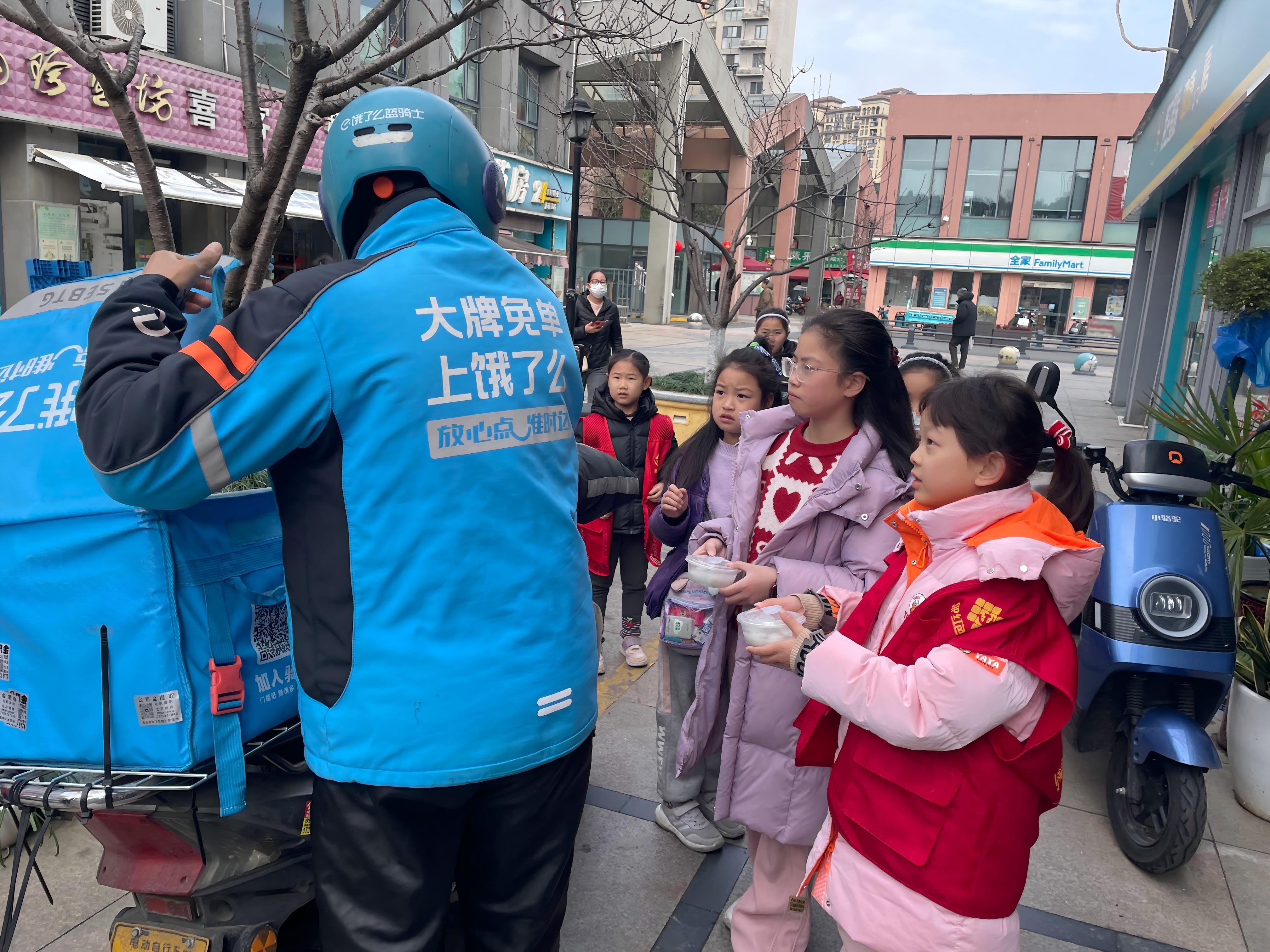 活动最后,居民们将煮好的汤圆分装至爱心餐盒,组成志愿小分队前往芭堤社区商业街,为正在忙碌的外卖骑手、快递小哥送上热气腾腾的汤圆。“师傅,趁热吃,元宵节快乐!”一句句朴实的问候,伴随着汤圆的热气,温暖了奔忙在路上的人们。