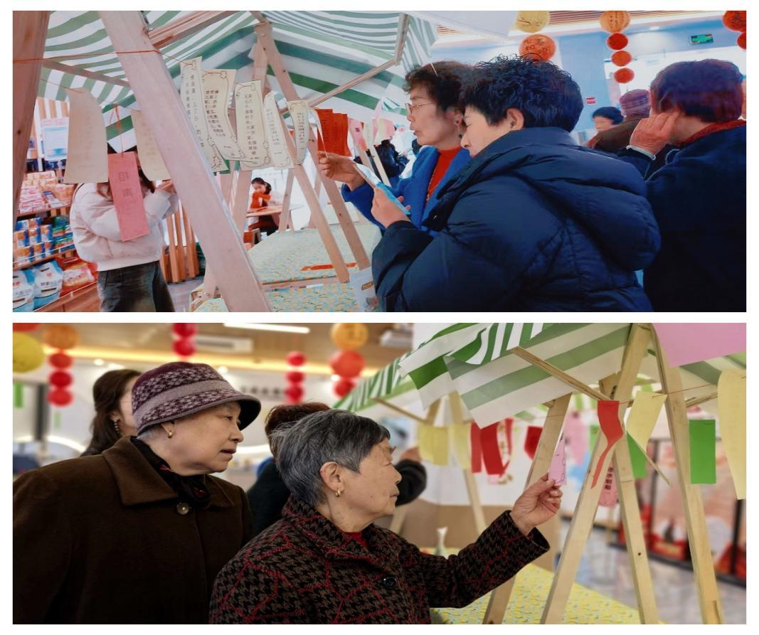 下午2时,活动在“灯上解谜”区阵阵热议中正式拉开序幕。百余条彩色谜条在风中摇曳,本次灯谜设计兼顾“传统味”与“社区情”,既包含“马踏新春”“三马精神”等应景民俗谜题,也有航天、人工智能等科技前沿题,更融入反诈防骗、垃圾分类、环境文明建设等实用知识,致力打造有文化、有温度、有科技的猜谜体验。居民们三三两两围站在彩灯下,手里拿着谜语,有的低头沉思,有的小声探讨,还有些小孩子举着谜语向长辈求助,“玉兔不是凡间兔,广寒宫里把药捣。(打一中国航天器)”,一个喜欢科普知识的大伯脱口而出,“玉兔号月球车”。