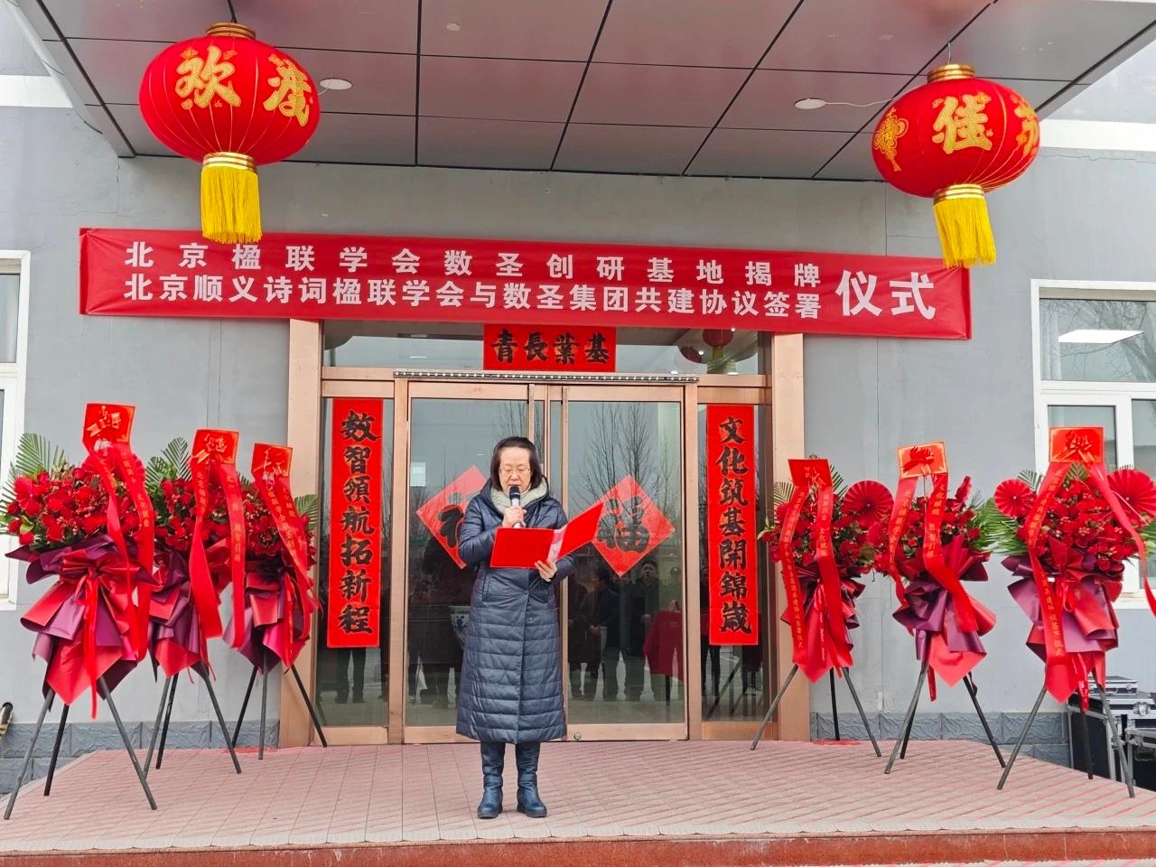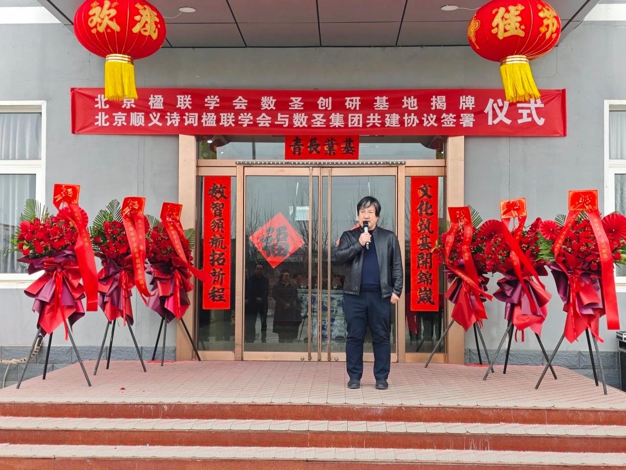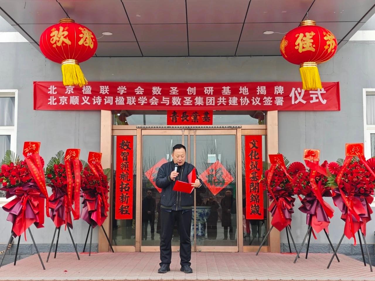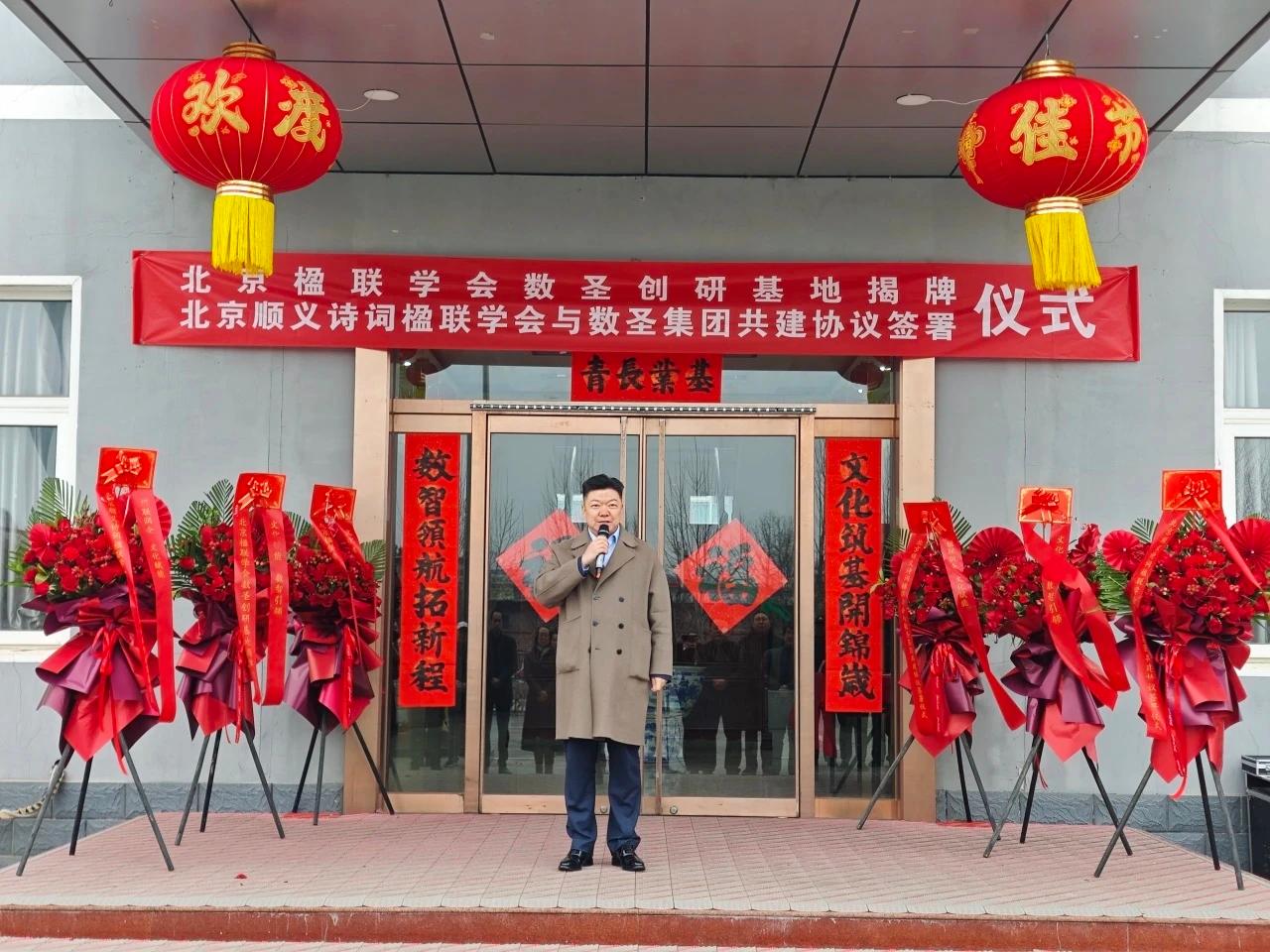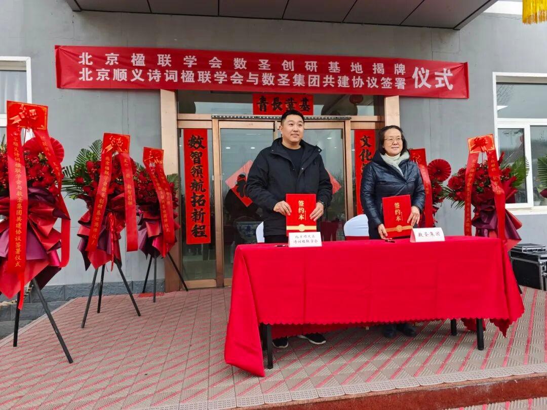社区文化网讯(王清江 报道) 2月28日上午,“楹联润企·文化赋能——北京楹联学会数圣创研基地揭牌暨北京顺义诗词楹联学会与数圣集团共建协议签署仪式”在数圣集团科技楼广场隆重举行。北京楹联学会、顺义区诗词楹联学会、顺义区文联、区工商联、区文旅局及相关文艺社团领导嘉宾齐聚,共同见证传统文化与企业融合发展的重要时刻。