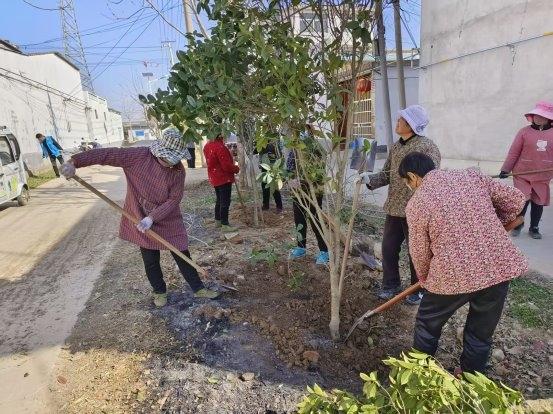 3月初,该镇党委、政府结合辖域整体绿化造林情况及当前建设“滨湖生态小镇”、“省和美乡村”及“美丽宜居村庄”需要,安排各村以“找空补缺、见缝插针”为原则,组织村组党员干部以身作则带头植树造林,给群众带个好头、做个表率,给绿化、美化、亮化村庄环境颜值增光添彩。同时各村还组织志愿者开展“我为美丽家园添风彩”专题植树造林活动,引导他们人人都积极主动去植树造林,争取早日让村庄剩余公共空间、沟渠路道边、田头空置地尽快披上绿装,为建设自己的美丽家园贡献一份力量。胜利村党支部书记何坤原结合当前村里“省和美乡村”建设指标要求,带领9名村组党员干部和12名志愿者先后到牌坊、韩场、金庄等村庄栽植红叶石楠、黄杨、桂花等绿化苗木600多棵,被群众称之为村庄环境的“绿化使者”。刘宅村党支部书记姚峰告诉记者:“我们村是去年3月份成功创建‘省和美乡村’的,由于去年夏季干旱少雨,致使一些点位绿化苗木出现了枯死现象,为了不影响整体和美乡村颜值,村里在3月初就组织30多名村组干部和群众对空缺点位进行补植了350多棵,现已进入了管护阶段。”