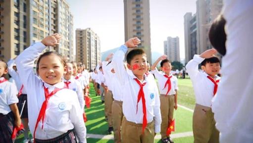 △济南领秀城社区内 学生参与学校组织的少先队活动