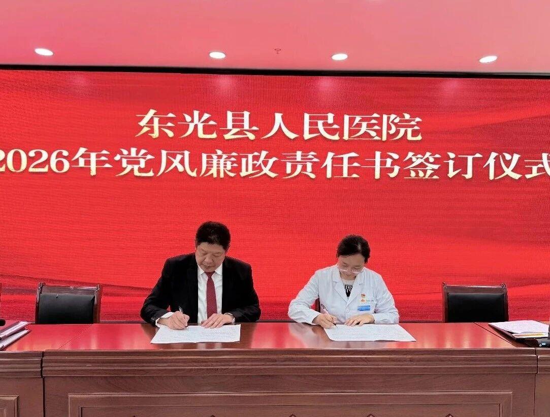 东光县人民医院党委书记韩鸿至、院长张振峰与各科室负责人分别签订《2026年党风廉政工作责任书》《2026年医疗质量管理责任书》和《2026年安全生产责任书》。