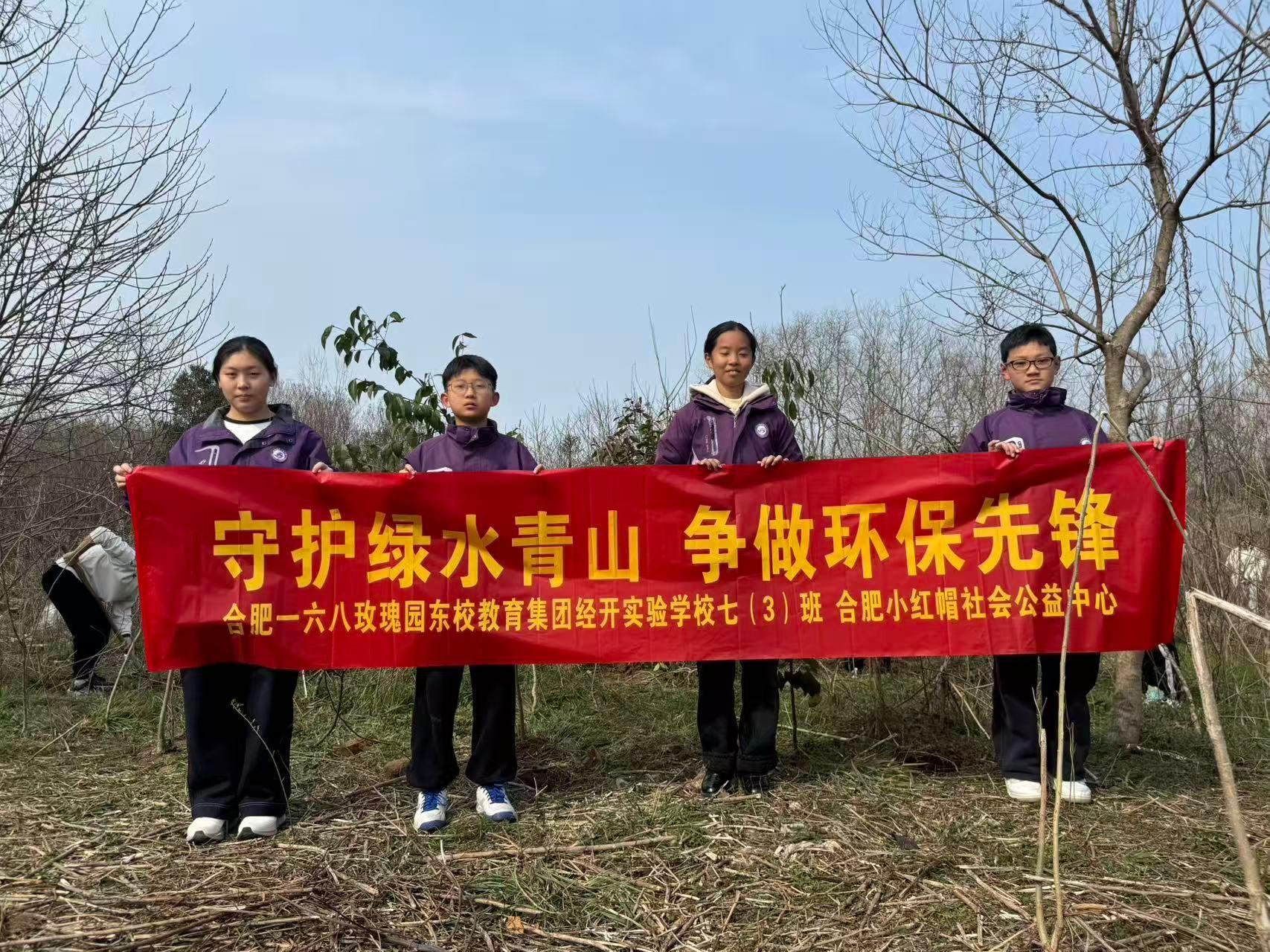 青春植绿守初心 志愿同行护青山——合肥小红帽公益中心联合多校开展植树节主题活动