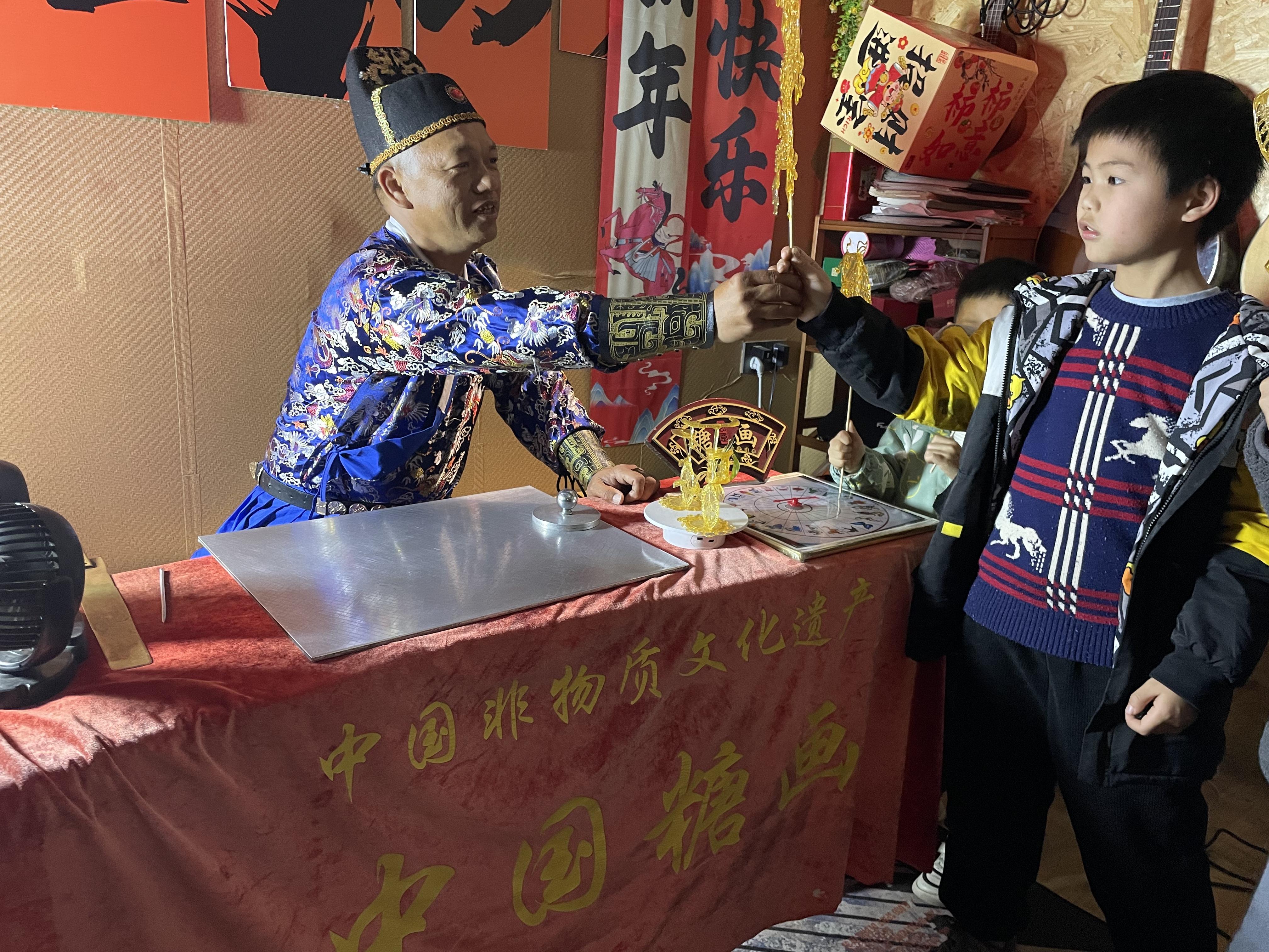 然而,这项甜蜜技艺曾面临传承断层。史青春坦言,过去糖画多出现在庙会集市,年轻人鲜少问津。转机出现在近年——永新县依托南门老街改造提升工程,探索“非遗+文旅”“非遗+夜经济”融合发展模式,为传统技艺搭建起展示新舞台。