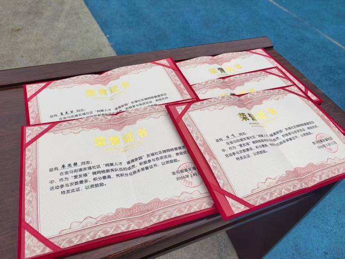 本次活动还特别设置了服务队伍激励环节,现场为年度服务积分排名前五的成员颁发了荣誉证书及相关物资,获奖成员手持证书与物资,脸上满是自豪与喜悦,纷纷表示将继续坚守服务初心,为社区发展贡献更多力量。其他服务队伍成员也深受鼓舞,现场表态将以获奖成员为榜样,未来更加积极地参与社区志愿服务,用实际行动积累积分,争取赢得属于自己的荣誉。