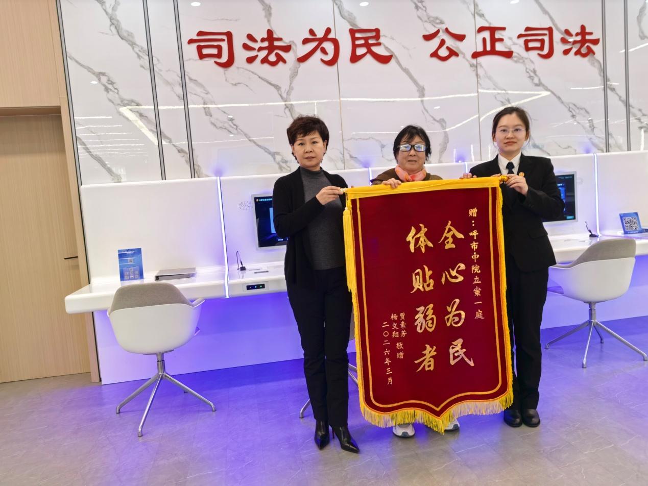 近日,市民贾素芳与儿子杨文翔一同来到呼和浩特市中级人民法院,送上一面印着“全心为民 体贴弱者”的锦旗,向呼和浩特市中院工作人员表达最诚挚的感谢。这面锦旗的背后,是呼和浩特市中院秉持司法为民理念,为困难当事人开启司法救助绿色通道,让法治温度照亮弱势群体维权之路的暖心故事。
