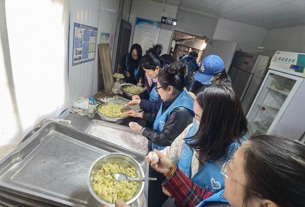 活动现场暖意融融、欢声笑语不断。志愿者们早早来到活动场地,分工协作、默契配合,动作娴熟有序。大家围在一起,一边包饺子,一边话家常、聊民俗,分享“龙抬头”剃龙头、吃饺子的传统习俗,在指尖翻飞间,一个个饱满圆润的饺子整齐码放,承载着对美好生活的祈愿与对群众的关爱。