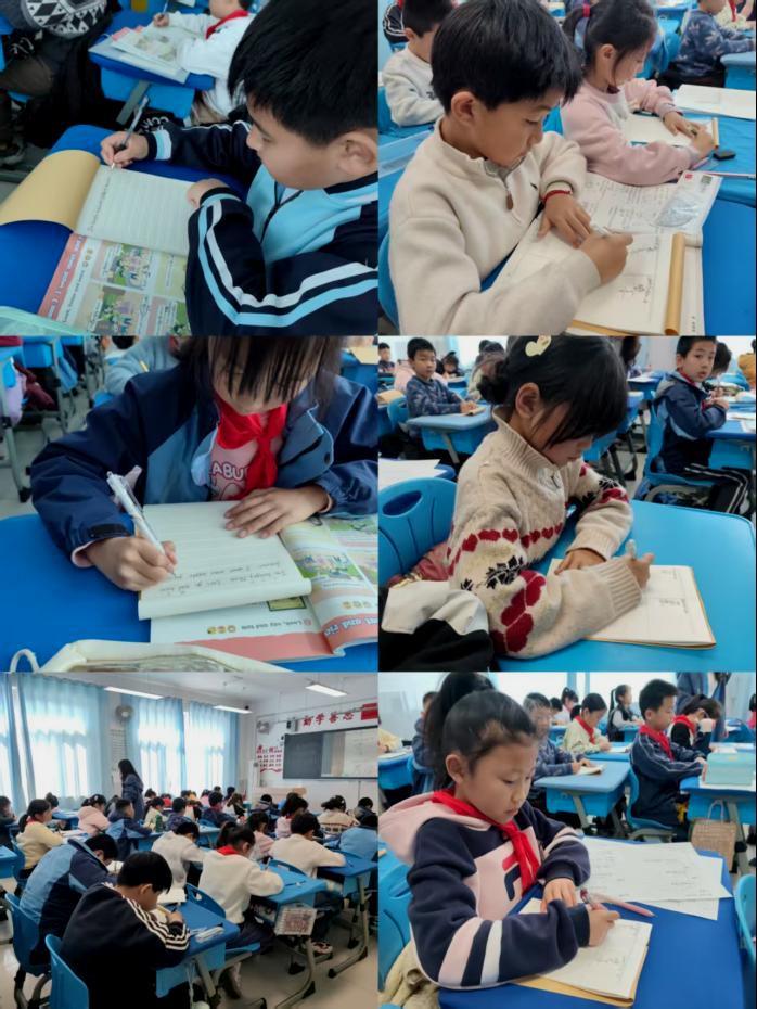 一直以来,学校高度重视学生书写素养的培育,将规范书写融入日常教学全过程。每日午写时光,语文教师亲临指导,悉心示范、逐一点评,从坐姿、握笔到运笔、结构,耐心细致地引导每一位同学,让“提笔即练字”成为校园常态,为孩子们打下坚实的书写根基。