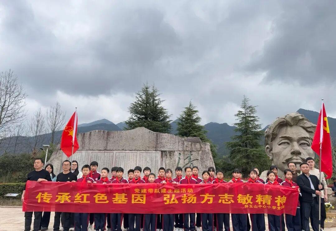 为深入弘扬方志敏精神,强化党员教师责任担当,发挥示范引领作用,推动学校党建与队建深度融合,3月25日下午,江西省上饶市玉山县怀玉山中心小学党支部联合少先队大队部带少先队员们赴怀玉山红色教育基地开展“传承红色基因 弘扬方志敏精神”主题党建带队建行走思政课。