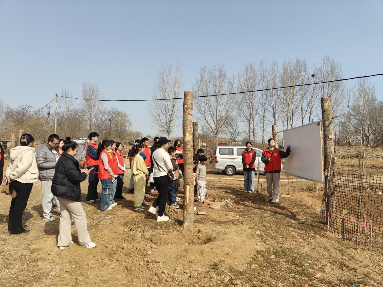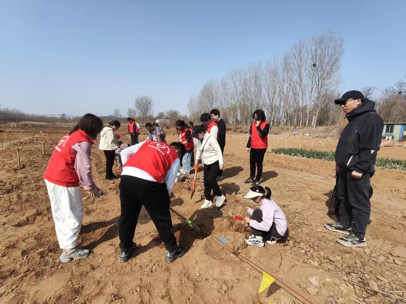 植树造林,播撒绿色希望。在林果园艺区,中国农业大学烟台研究院海洋与农业工程学院的大学生志愿者,深入田间地头,凭借扎实的农学专业知识,为孩子们讲解树木生长、生态保护相关知识,手把手指导操作。孩子们亲手完成挖坑、铺土、扶苗、培土、浇水等全套实操,悬挂上专属姓名纪念牌,用双手为春日添绿,用责任守护绿色家园。