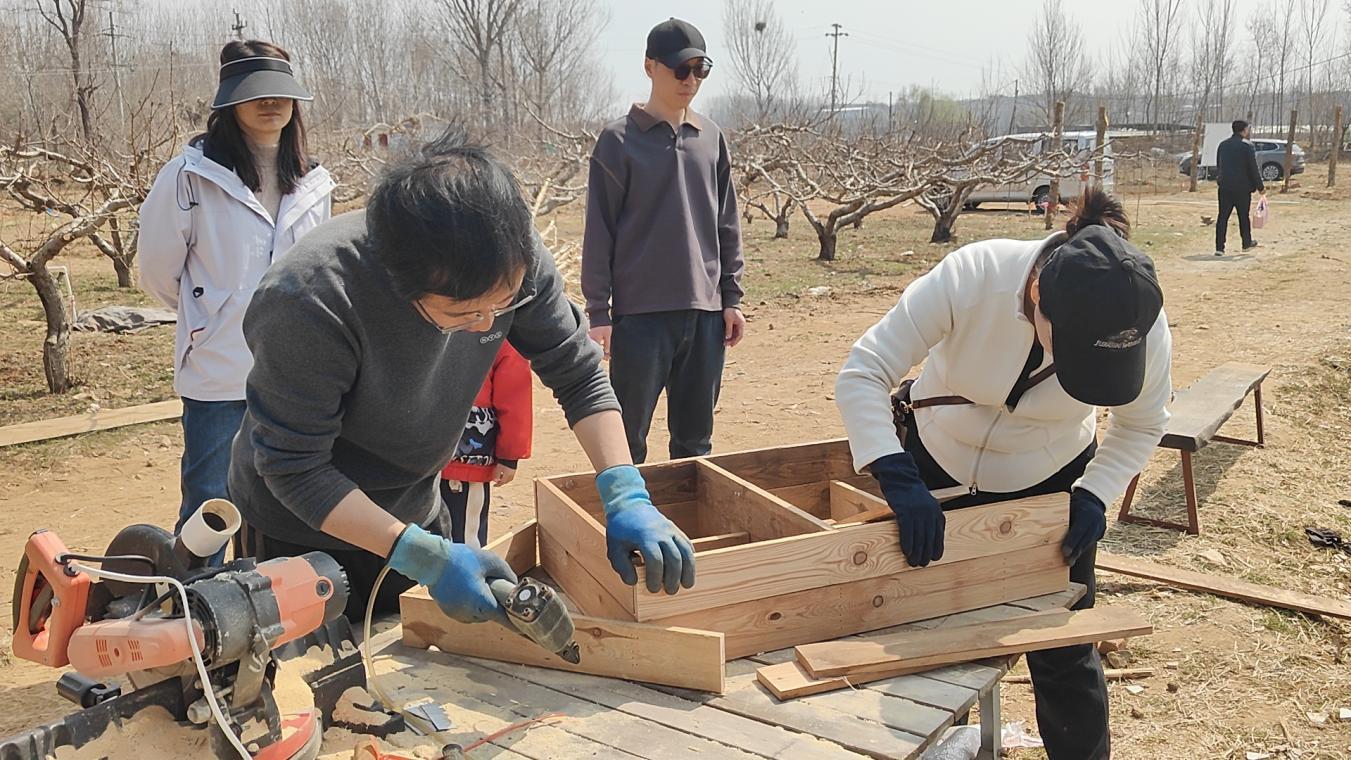 创意手工,打造昆虫家园。以生态平衡、保护益虫为主题,开展昆虫旅馆制作活动。农场提供木工框锯、锤子、钉子等基础工具,孩子们就地取材,利用原木、竹段、干草、松果等天然环保材料,自主设计、亲手搭建专属昆虫小屋,为瓢虫、蜜蜂等益虫打造安全舒适的栖息居所。王老师指导大家设计造型、锯木实操,讲解昆虫知识,引导孩子尊重自然、爱护生灵。做成的昆虫旅馆摆放在桃树林里,成为农场一道独特的生态风景线。