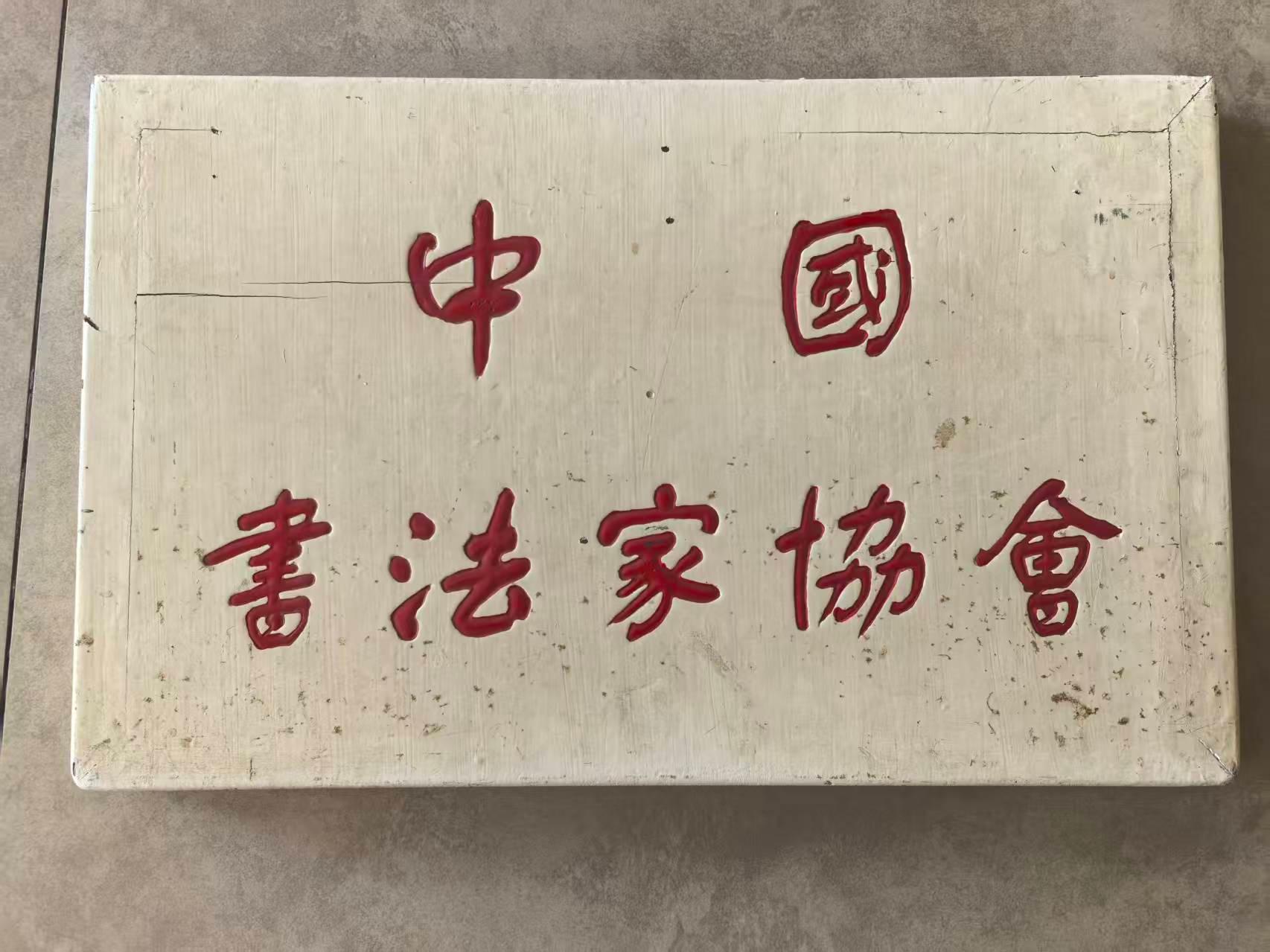 关键历史时刻定格于1981年5月2日——中国书法家协会正式挂牌成立。经吴作人、古元先生举荐,张艺群父亲调入文联,全程参与美协恢复与书协筹建工作。而协会成立的首块牌匾,从选材、题字到镌刻,凝聚三代匠心:牌匾以温润椴木为材,题字出自首任书协主席舒同先生,笔力苍劲;画丹由其父亲手勾勒;字字镌刻,皆出自时年24岁的张艺群之手。初为栗棕底、石绿字,后重饰为白底红字,庄重肃穆,成为中国书法史上的重要实物见证。