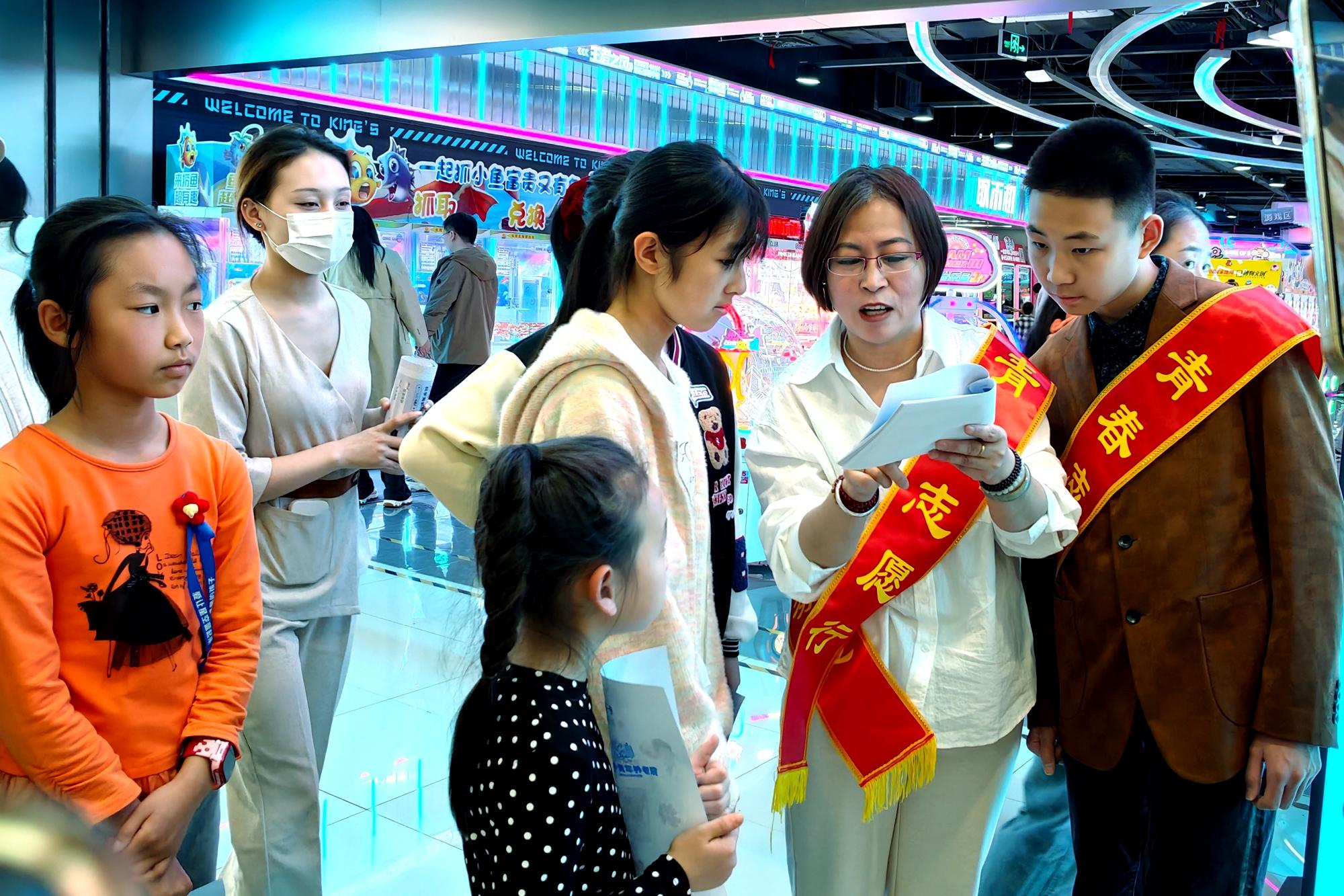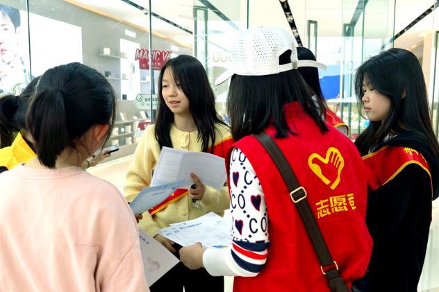 50名志愿者组成5支小队,在滨海万达广场室外广场及室内1-4层开展随机街拍小问答。将孤独症科普知识融入轻松互动,引导市民在交流中了解、尊重、接纳孤独症群体,让科学认知与善意理念走进大众身边。