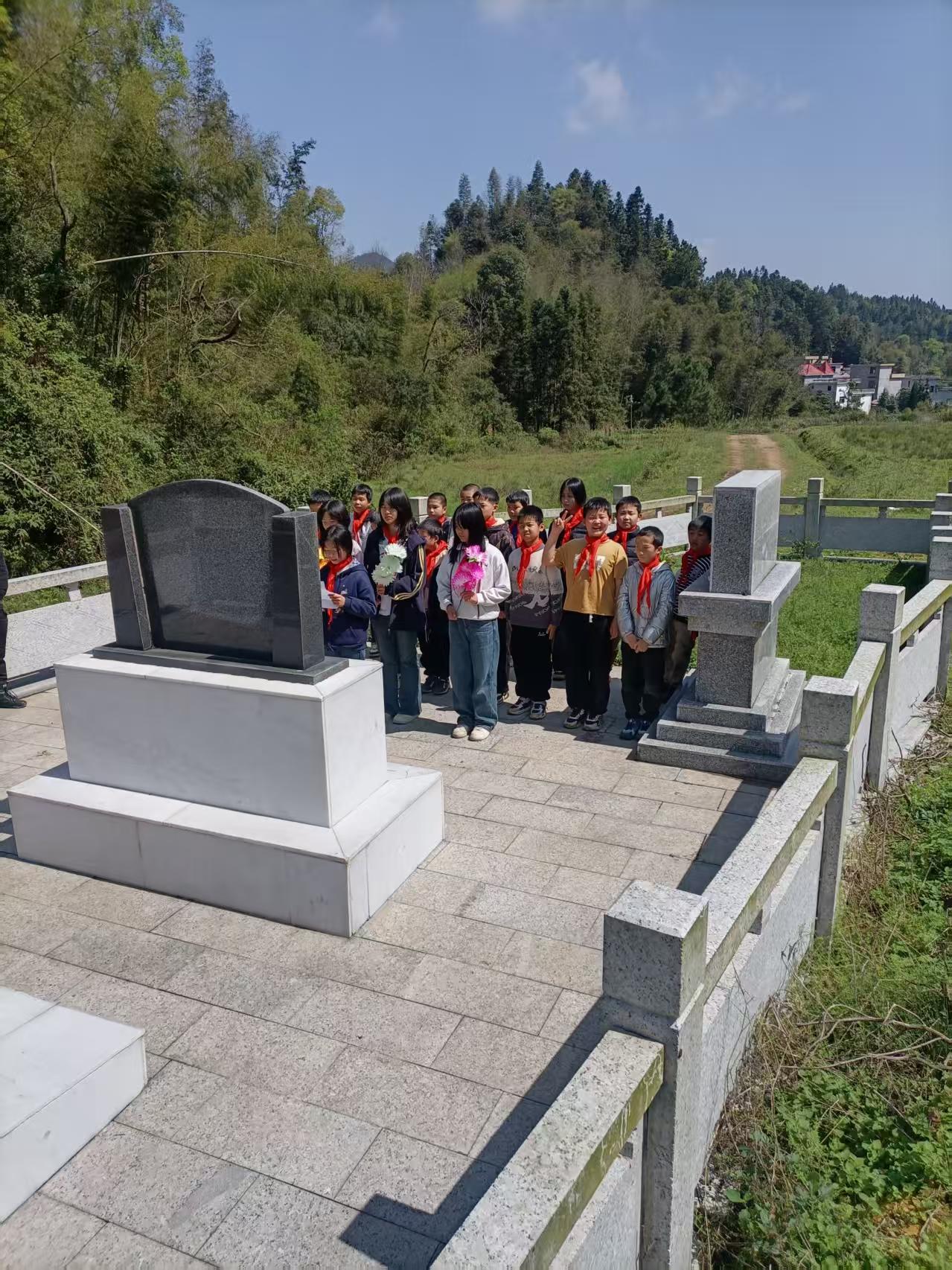 梅花小学组织师生前往梅花山战斗牺牲烈士纪念碑前敬献鲜花,让学生再次接受革命传统教育,进一步加深了对梅花山战斗历史的理解。在祭扫现场,尹校长以梅花山战斗史实为素材,要求每位学生撰写一篇纪念文章,留存永恒的怀念。