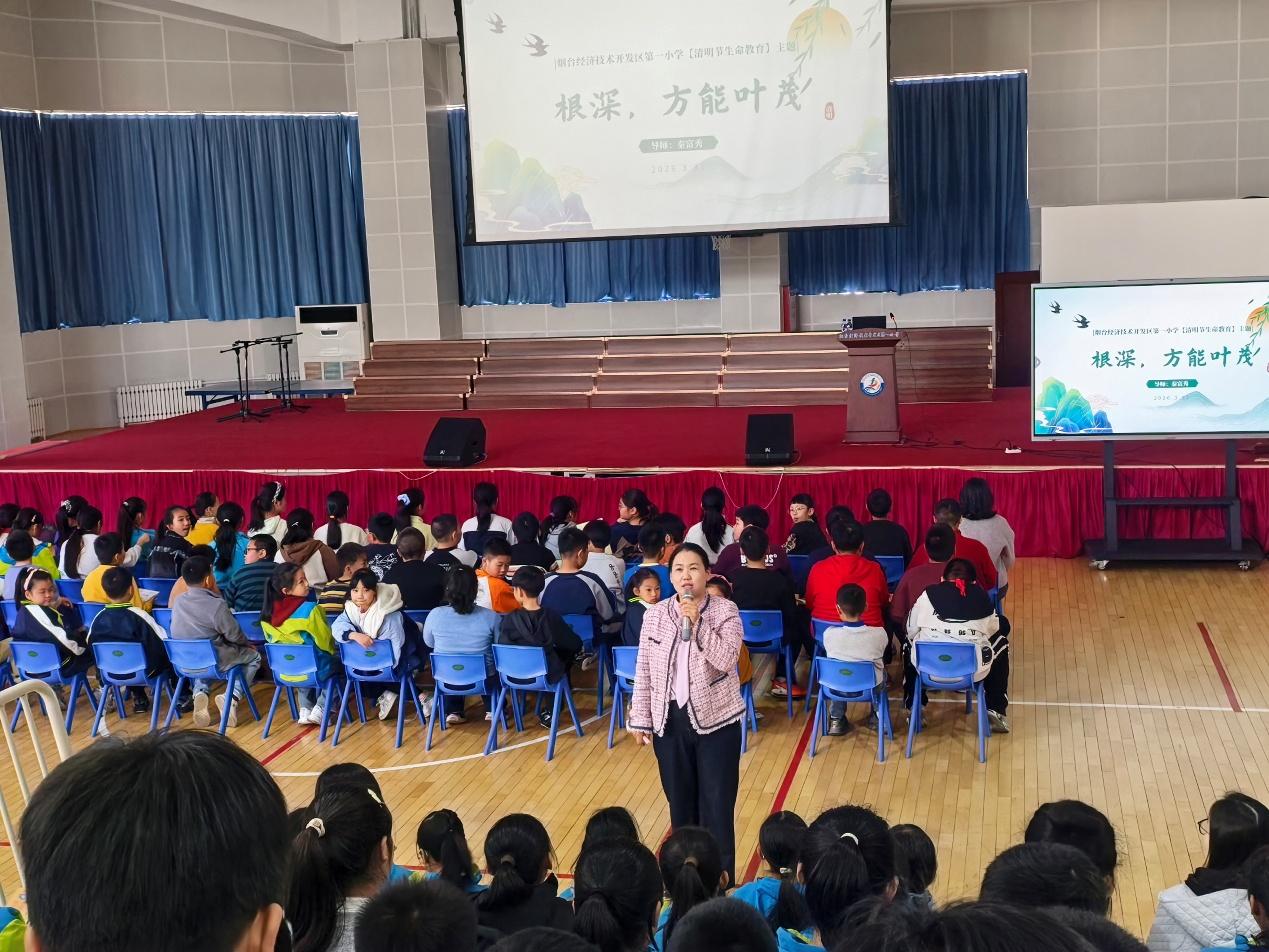 在清明节来临之际,为引导学生感悟生命意义、传承生命力量,近日,烟台经济技术开发区第一小学在风雨操场为五年级师生举办了一场题为《根深,方能叶茂》的生命教育主题讲座。活动特邀慧爱家庭教育创始人、知行少年成长中心创始人、青少年学习力导师、系统治疗师及心理咨询师秦富秀老师担任主讲。