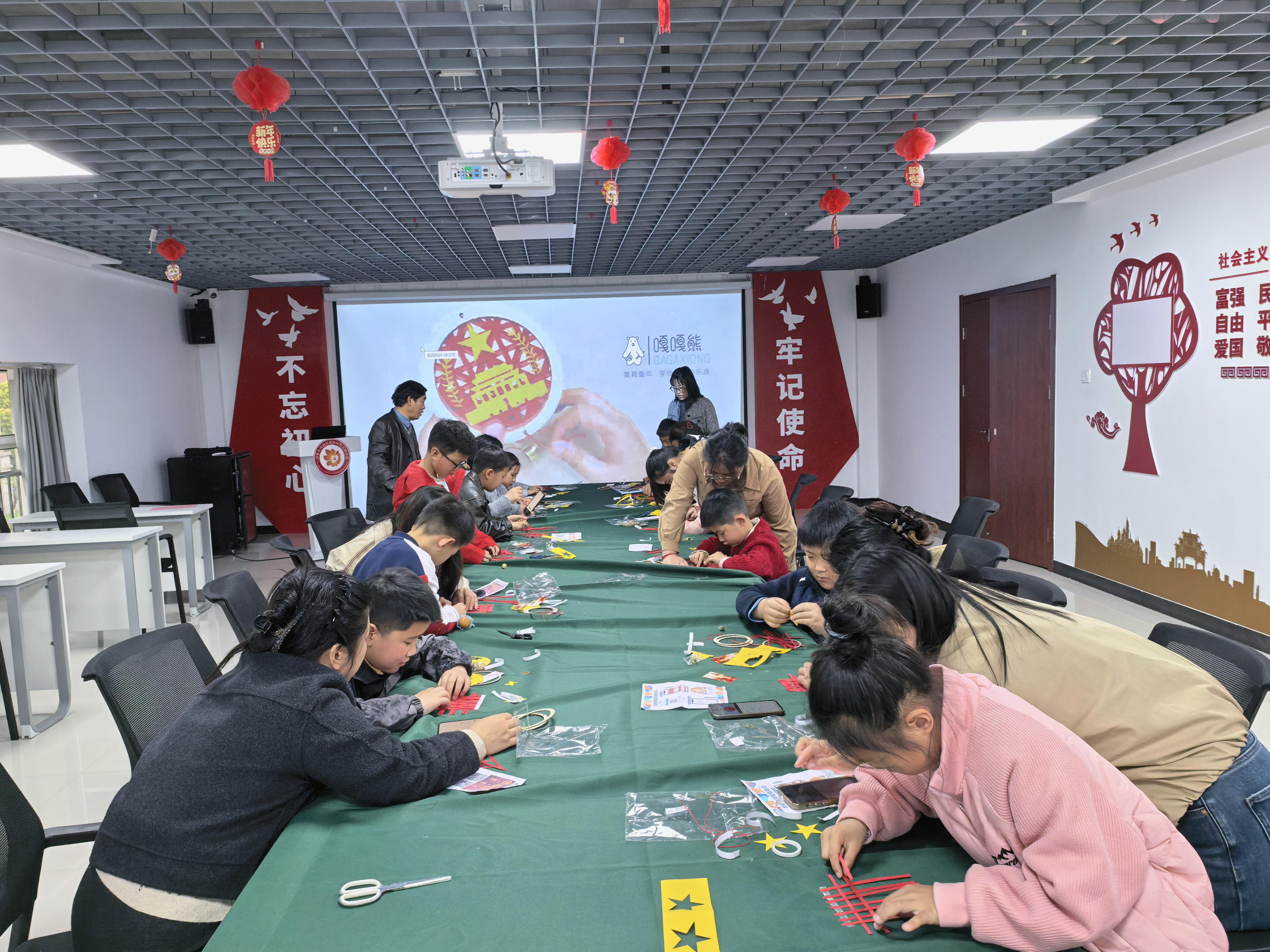 巧手绘初心,竹编风铃传递红色情怀。在志愿者的耐心指导下,青少年们拿起竹条、红绳,认真学习编织技巧。大家一边专注地摆弄手中的材料,一边交流着对红色文化的理解,将对祖国的热爱融入每一个缠绕、每一次打结的编织步骤中。不一会儿,一个个造型别致、点缀着五角星、红旗等红色元素的风铃便纷纷完成。微风拂过,风铃发出清脆悦耳的声响,仿佛在轻声诉说着孩子们对红色精神的传承与向往。