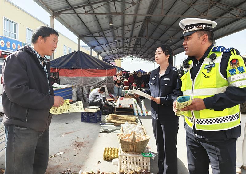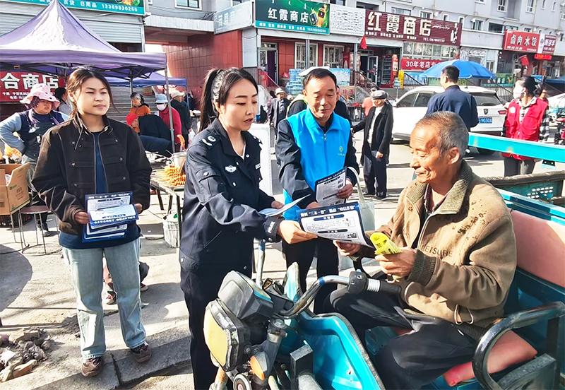 “赶集赶的是热闹,安全守的是平安。大家骑电动车时,头盔卡扣一定要系紧,这不是小事,而是保护自己和家人的关键……”考虑到老年人、青少年等重点群体的出行安全需求,联合普法宣传小组的工作人员重点叮嘱老年人过马路要遵守“一慢二看三通过”原则,夜间出行尽量穿着亮色衣物;