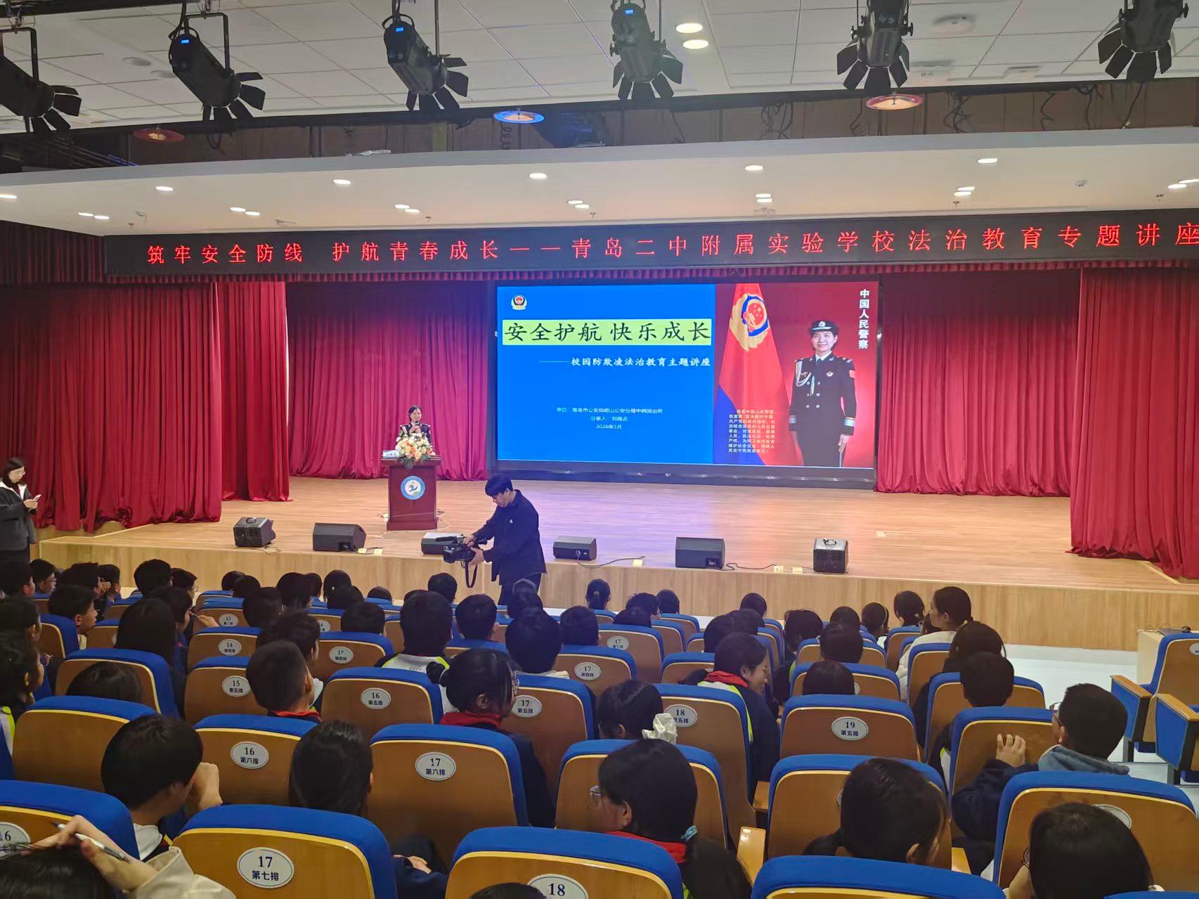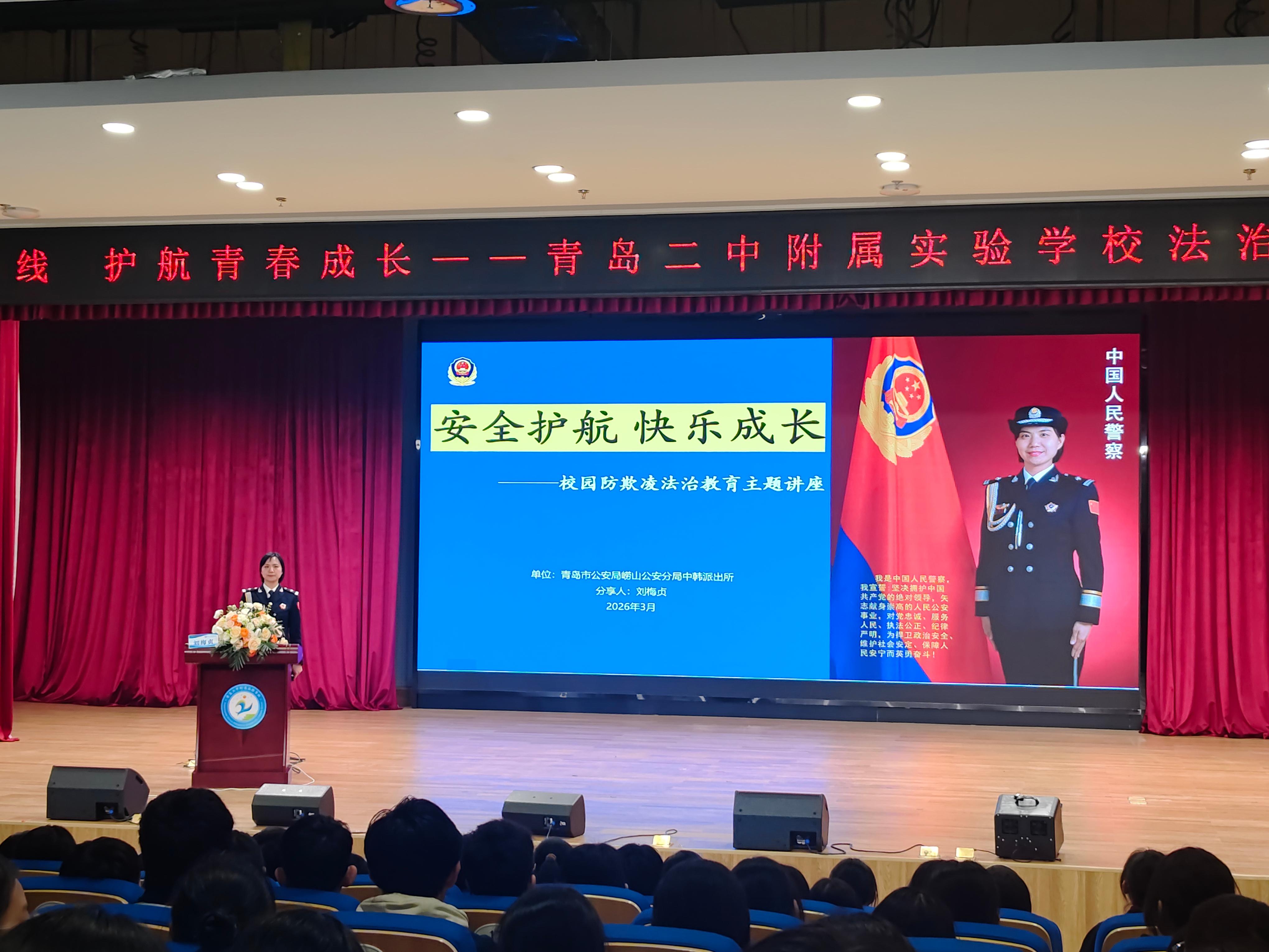 山东青岛崂山公安中韩派出所走进青岛二中附属实验学校开展防欺凌专题教育