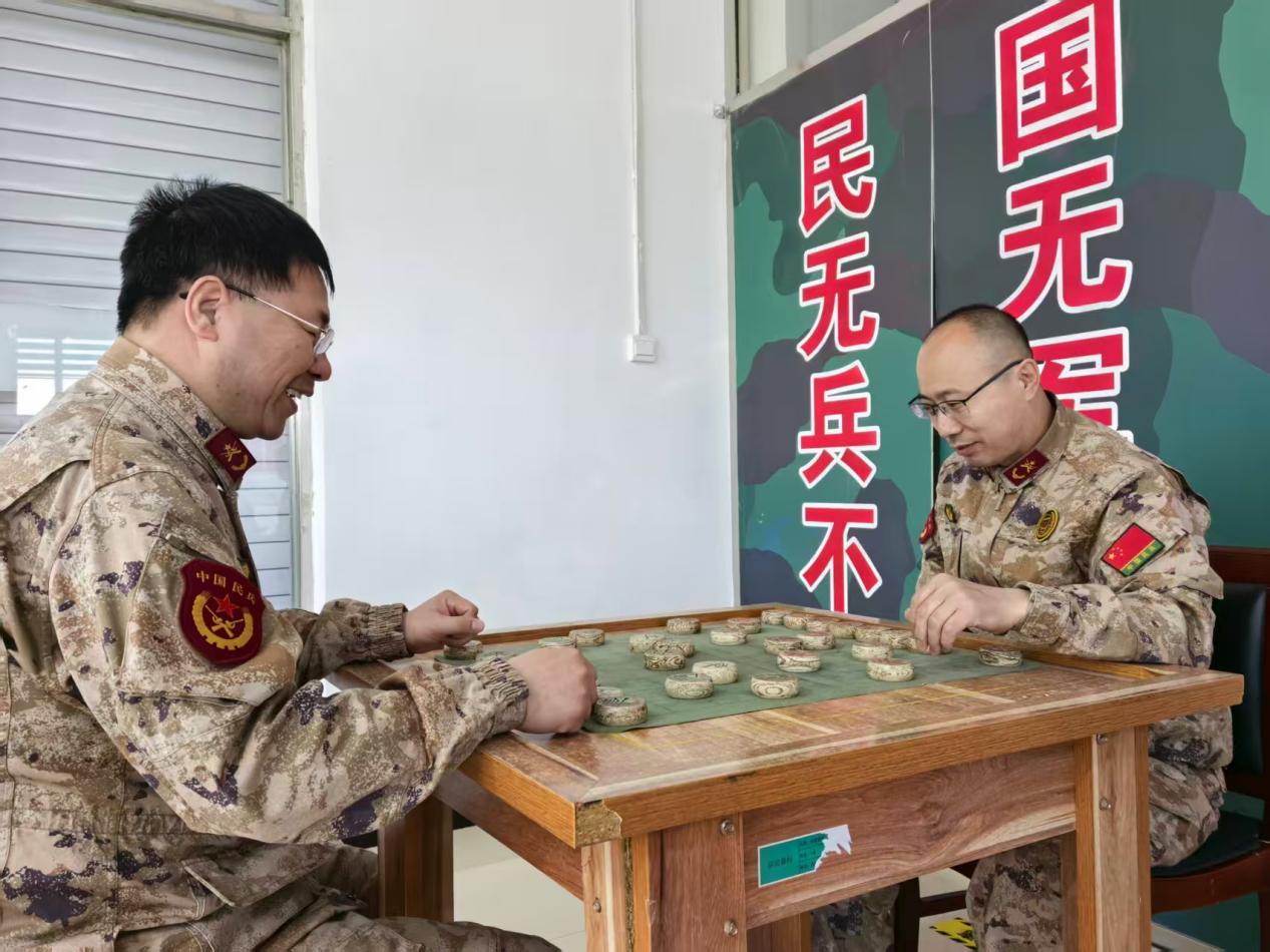 文体活动现场,民兵骨干们热情高涨、踊跃参与。台球桌前,大家握杆、瞄准、击球,动作娴熟、配合默契,每一次精准进球都引来阵阵喝彩,在切磋球技中增进了彼此的了解与信任;扑克桌上,大家遵守规则、从容对弈,时而沉着思考,时而轻松交流,在欢声笑语中缓解了训练和工作的疲惫;象棋桌前,选手们凝神静思、运筹帷幄,楚河汉界间,落子从容、步步为营,在对弈中锻炼了逻辑思维能力,也展现了民兵骨干沉着冷静、奋勇争先的精神风貌。各类文体活动的开展,不仅丰富了民兵骨干的业余生活,更营造了团结友爱、互帮互助、积极向上的良好氛围。