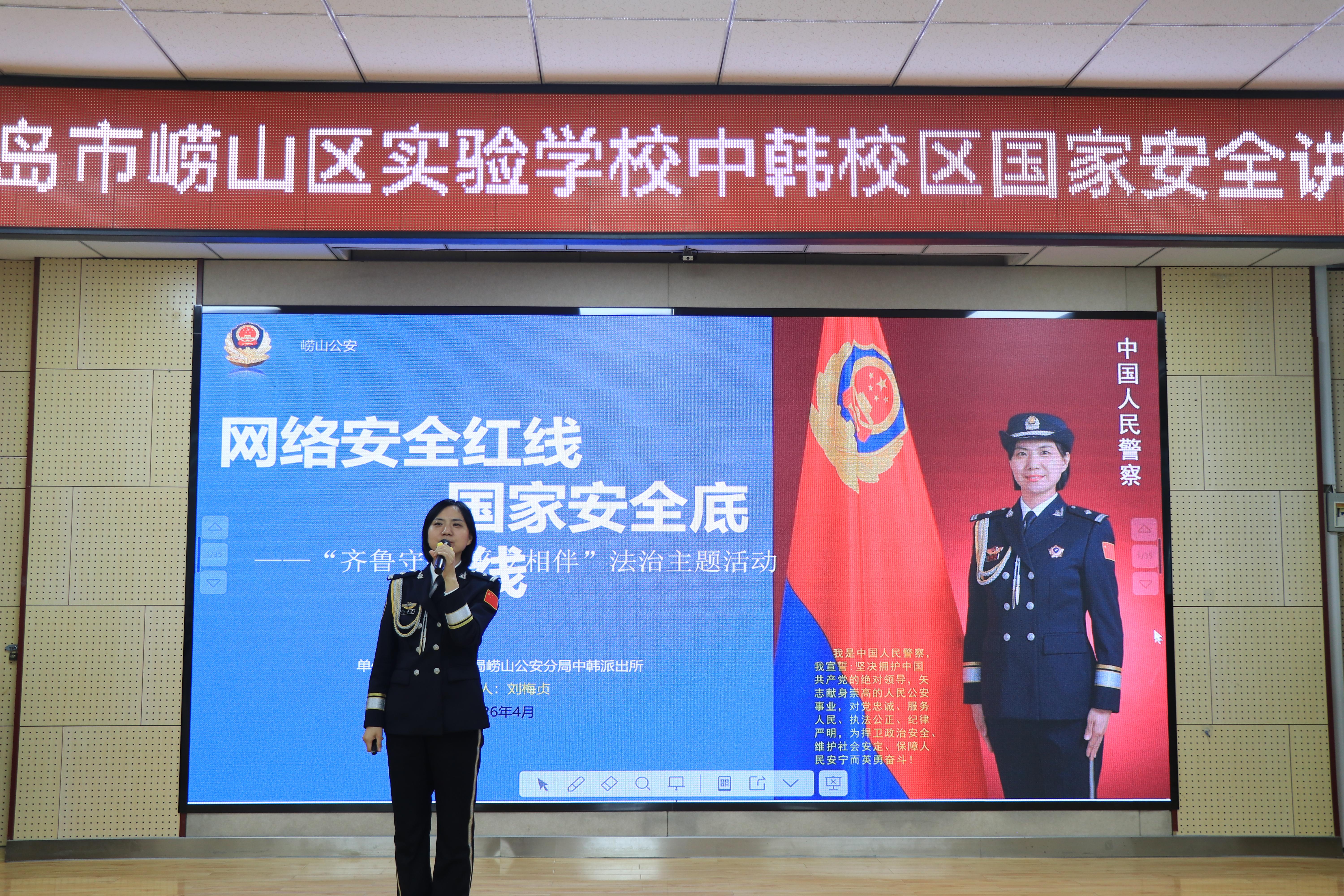 社区文化网讯(王清江 报道 通讯员 王子昊)在第11个全民国家安全教育日即将到来之际,为深入贯彻总体国家安全观,提升青少年国家安全意识与网络安全素养,筑牢校园安全防线,4月10日,青岛市公安局崂山分局中韩派出所走进崂山区实验学校中韩校区,开展“齐鲁守护·平安相伴”法治进校园主题活动。