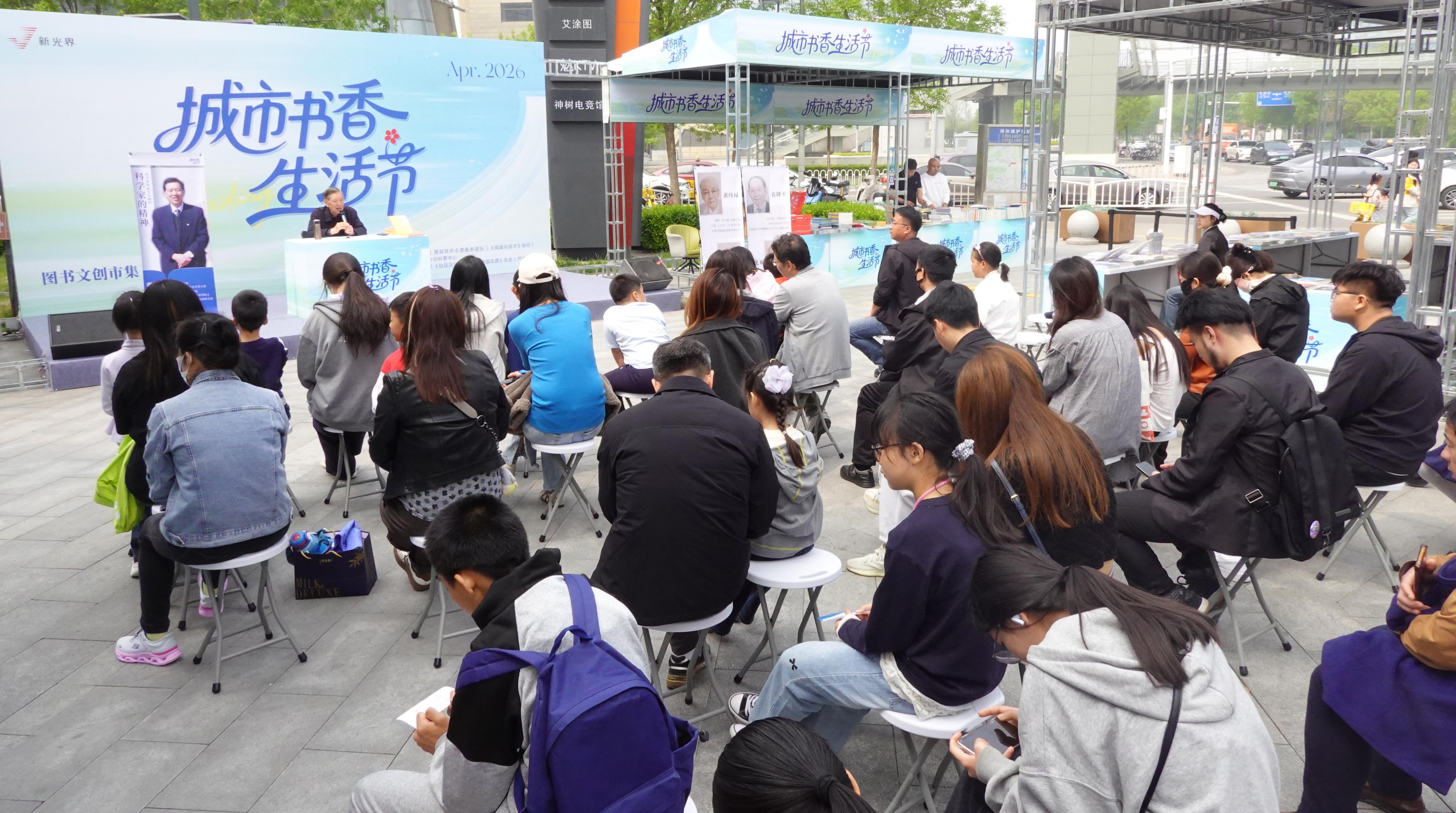 现场,市民纷纷前来,在书香与创意中共享一段春日人文时光。作为本次生活节的重点单元,活动特邀中国科学院文学艺术联合会名誉主席、著名科学诗人郭曰方莅临西红门新光界,携其诗集《诗路放歌》举办图书分享会并发表主题演讲。郭曰方是我国科学文艺创作领域的开拓者之一,多年来笔耕不辍,出版了大量著作,作品被译成多国文字在海外传播。