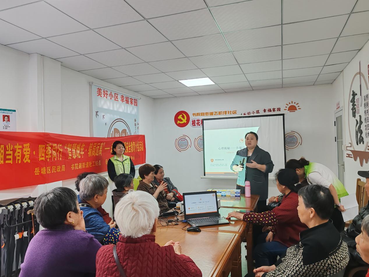 湖南湘潭市岳塘区民政局开展“智慧晚年・骗局远离”老年人防诈骗教育小组活动
