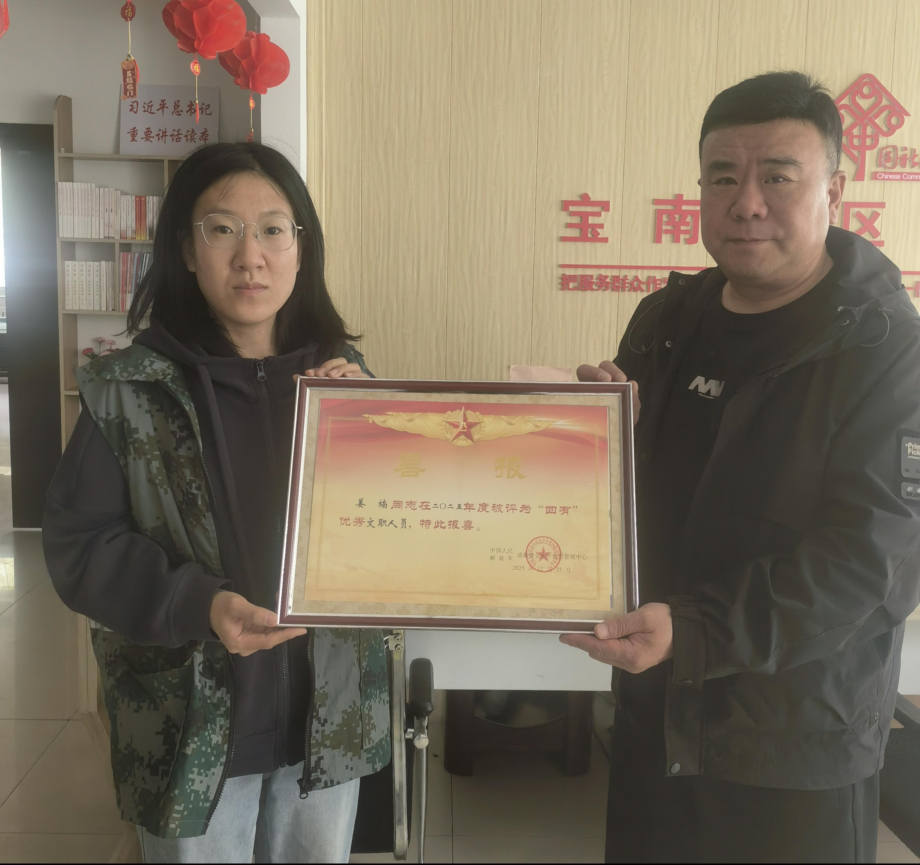 荣誉是军人的第二生命,一张喜报承载着军人的使命担当、奉献功勋,更凝结着家庭的坚守付出与无上荣光。为深入弘扬拥军优属优良传统,厚植尊崇军人、关爱军属的社会风尚,持续营造“一人参军、全家光荣”的浓厚氛围,近日,宁夏银川市兴庆区银古路街道宝南社区组织开展送喜报上门活动,为辖区荣获2025年度“四有”优秀文职人员称号的现役军人家属送上喜报与慰问,把党和政府的关怀温暖精准送达军属身边。