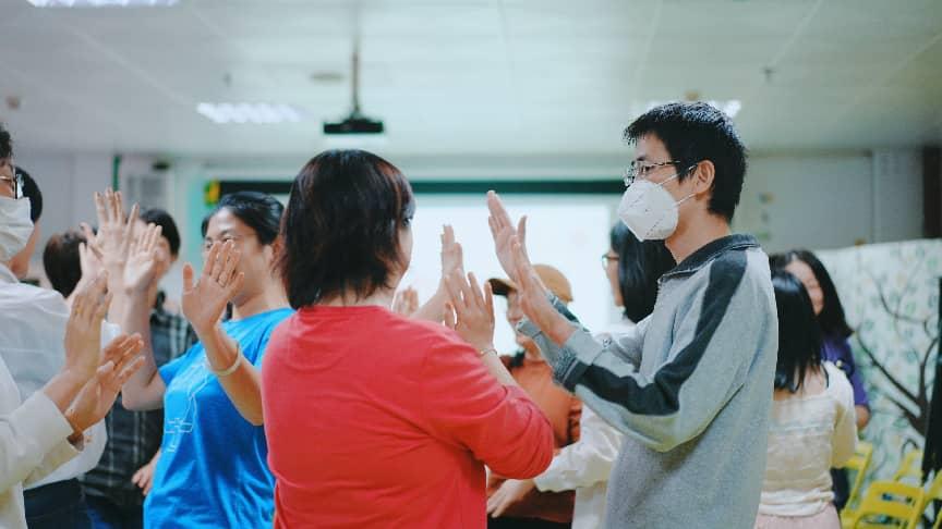 志愿者培训:社工和艺术治疗导师引导志愿者通过破冰游戏互相认识