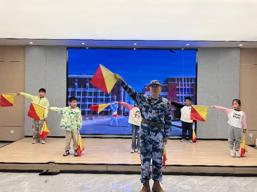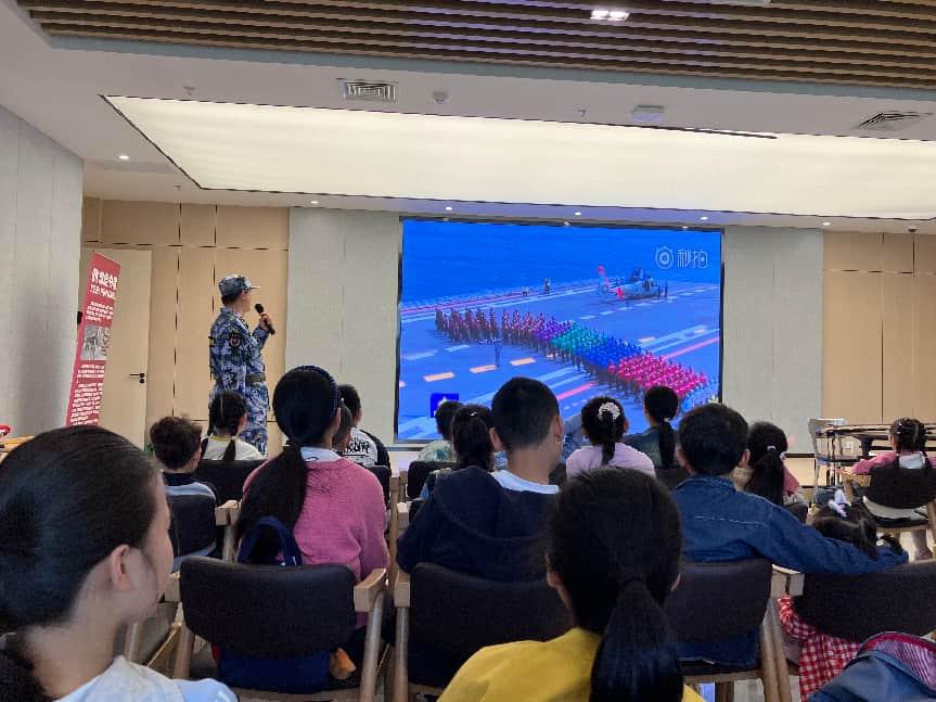 探访深蓝国防,厚植家国情怀。微型国防展区域,陈列着多艘中国海军舰艇模型,从新中国成立初期的老旧舰艇到如今的现代化航母、驱逐舰,生动展现了中国海军77年来的发展历程与辉煌成就。关工委志愿者为孩子们讲解了每艘舰艇的历史背景、性能特点,讲述了中国海军“向海图强”的奋斗故事。孩子们认真聆听、仔细观察,不时发出惊叹声,纷纷表示要努力学习,长大后为建设强大海军、守护国家海洋权益贡献力量。
